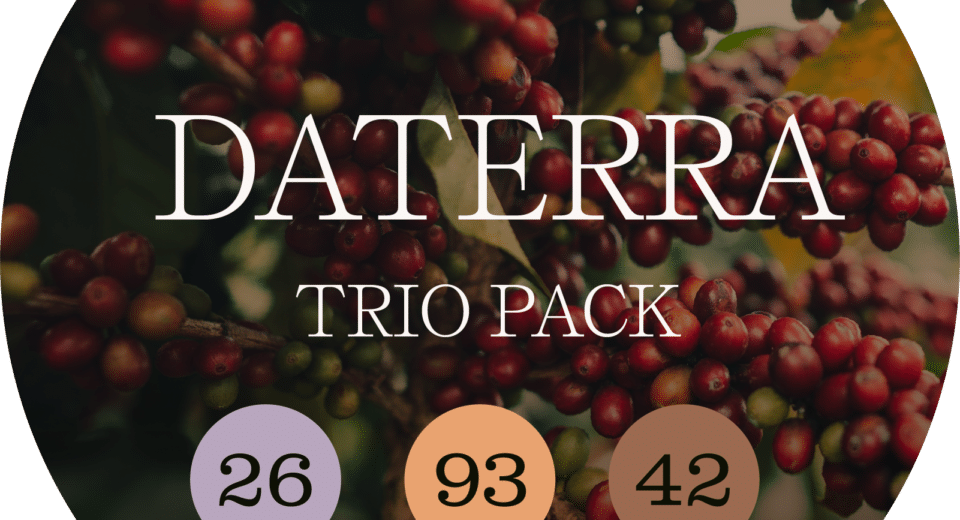 מארז קפה ייחודי מהחווה הברזילאית דאטרה, הכולל שלושה סוגי קפה בקלייה בינונית וכהה במשקל 200 גרם כל אחד.